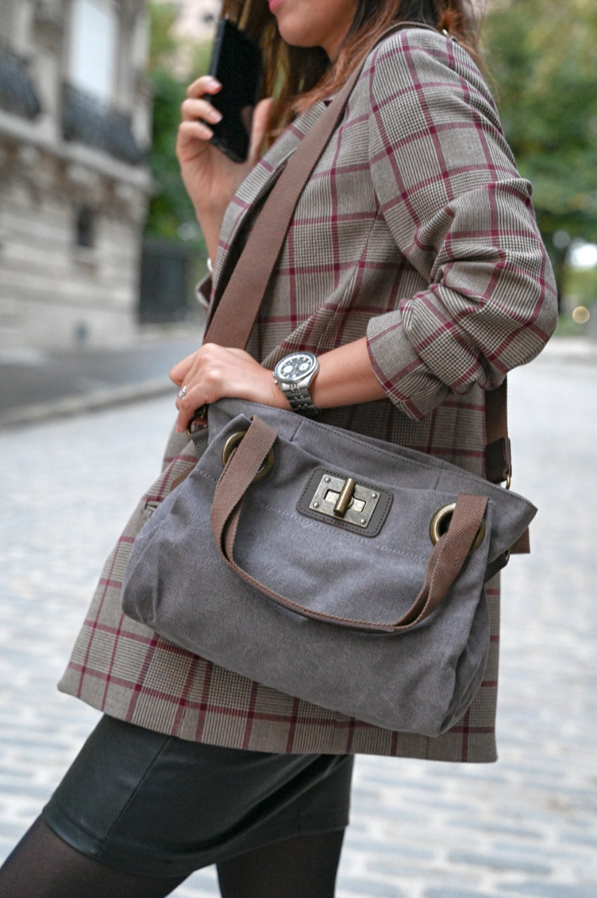 A compact icon of Parisian elegance, the Jardin Noir blends femininity and function in one timeless design. Crafted from soft faded cotton canvas with split leather accents, it’s lightweight yet structured—perfect for everyday wear.